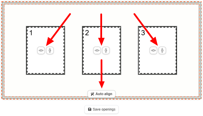 When working on a mat design, you can click the "Move openings" button to load the mat layout editor.